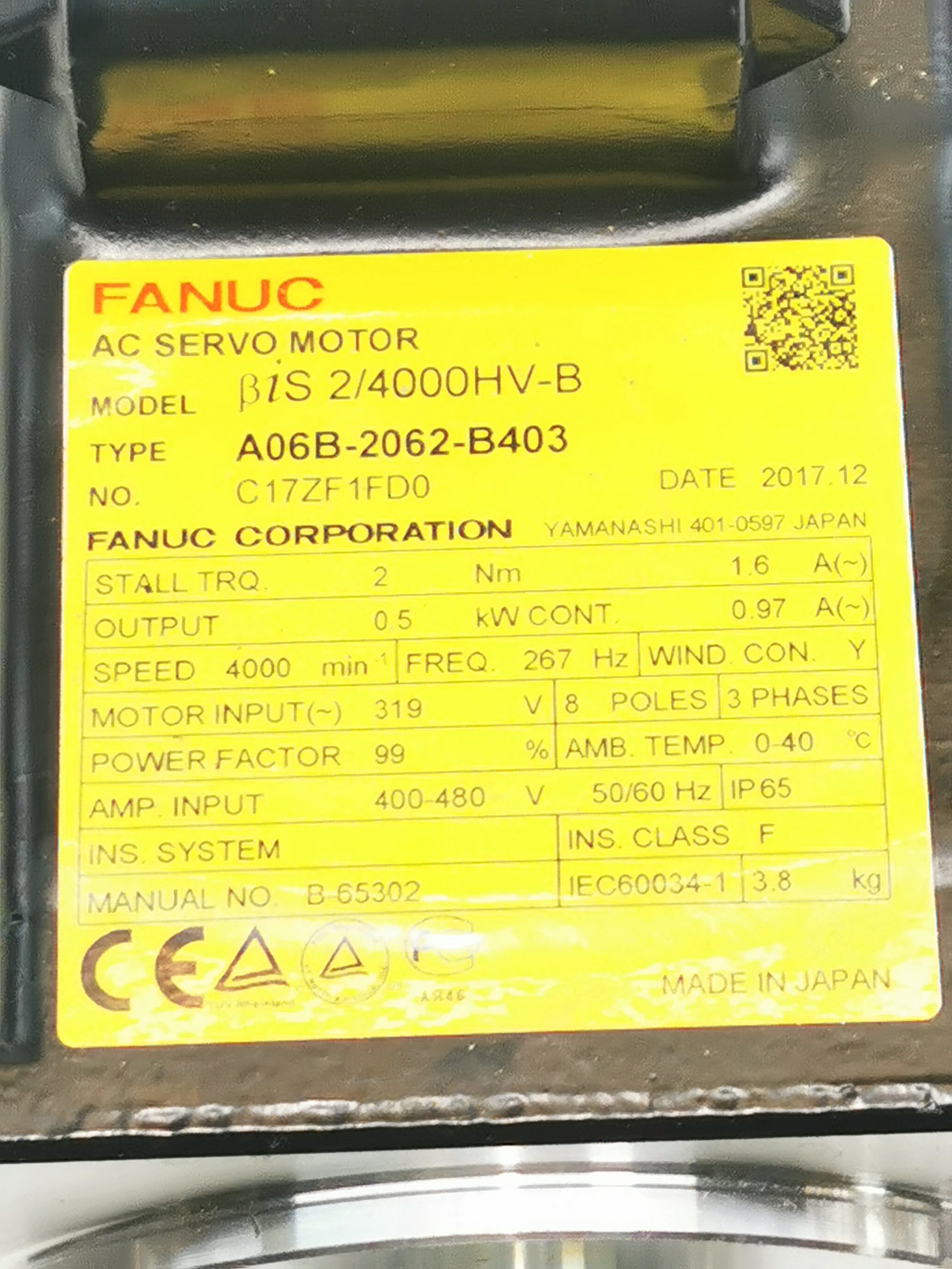 FANUC A06B-2062-B403 AC SERVO MOTOR