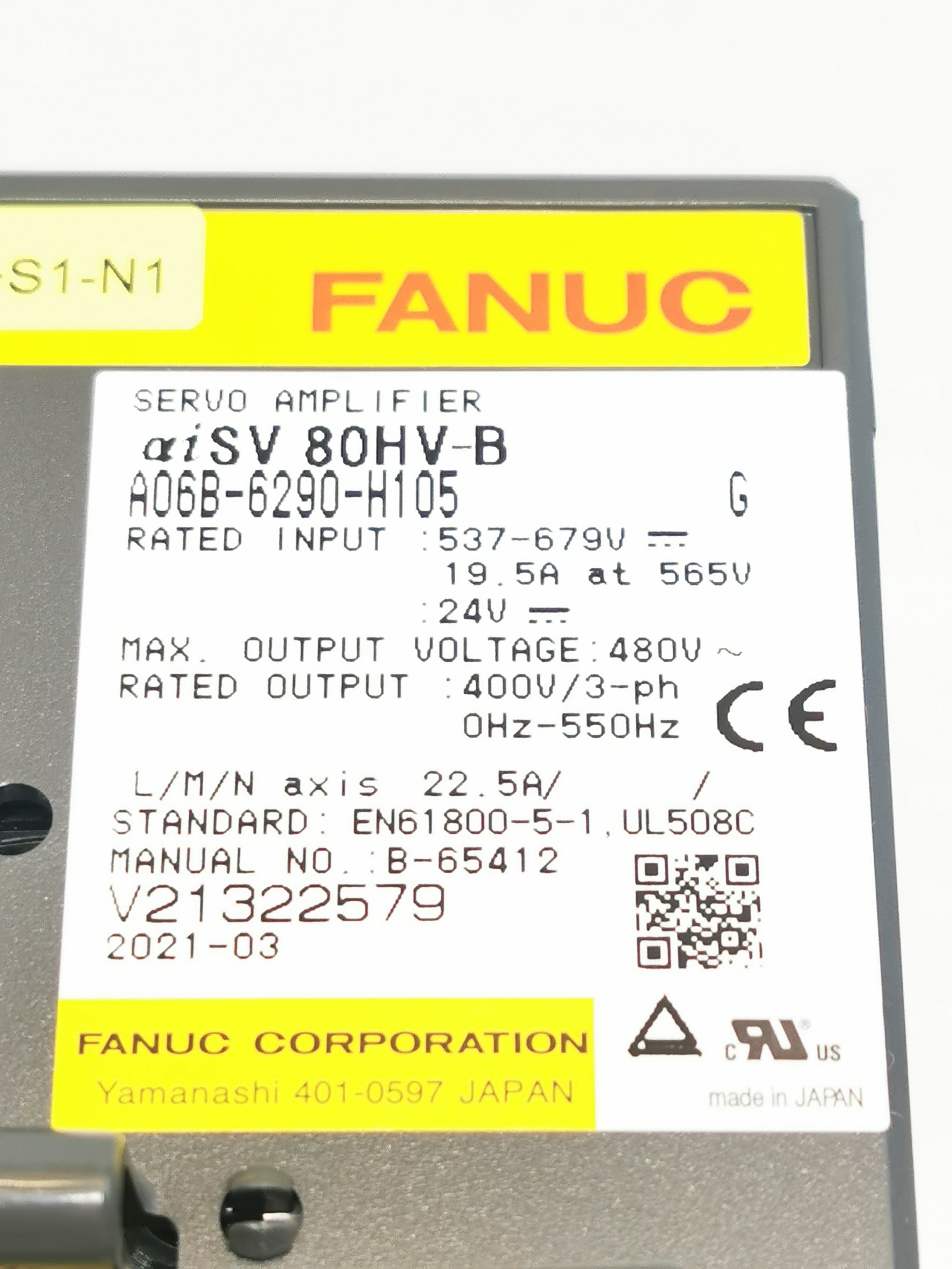 FANUC A06B-6290-H105 Version G Servo Amplifire aiSV 80HV-B