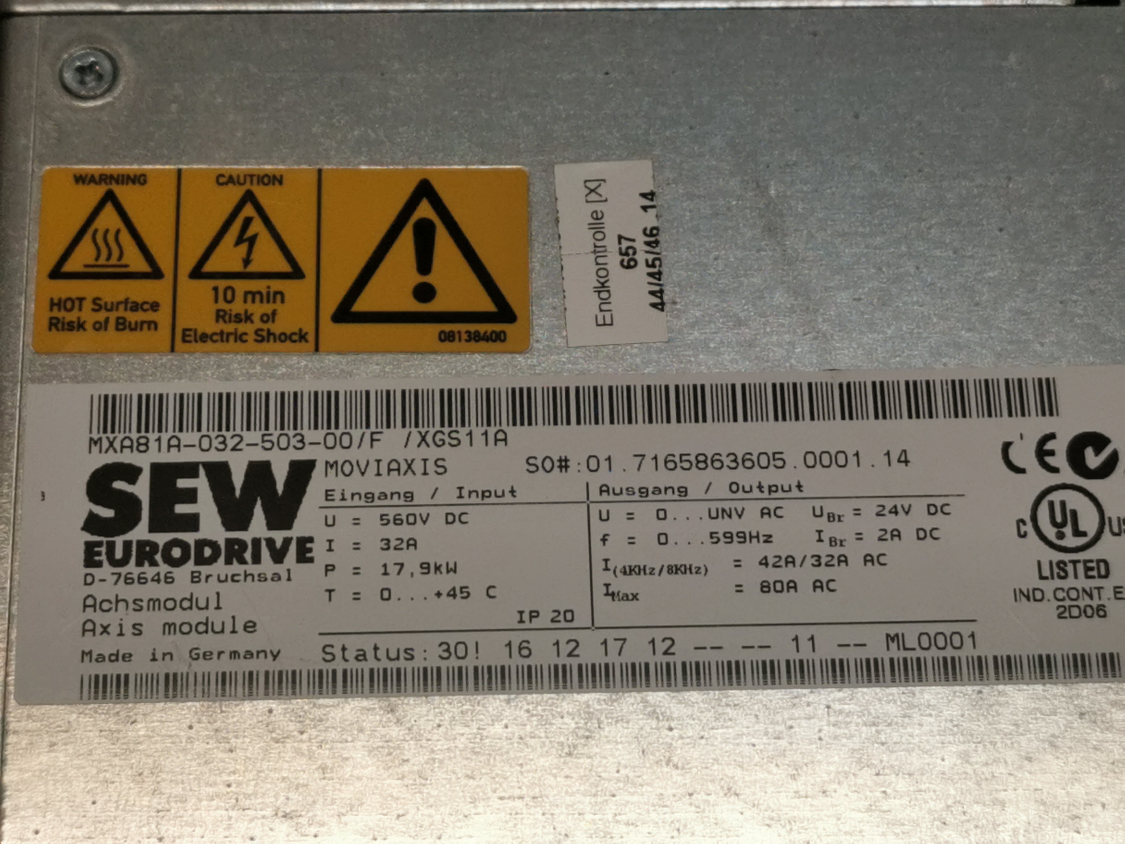 SEW EURODRIVE MOVIAXIS MXA81A-032-503-00/F / XGS11A