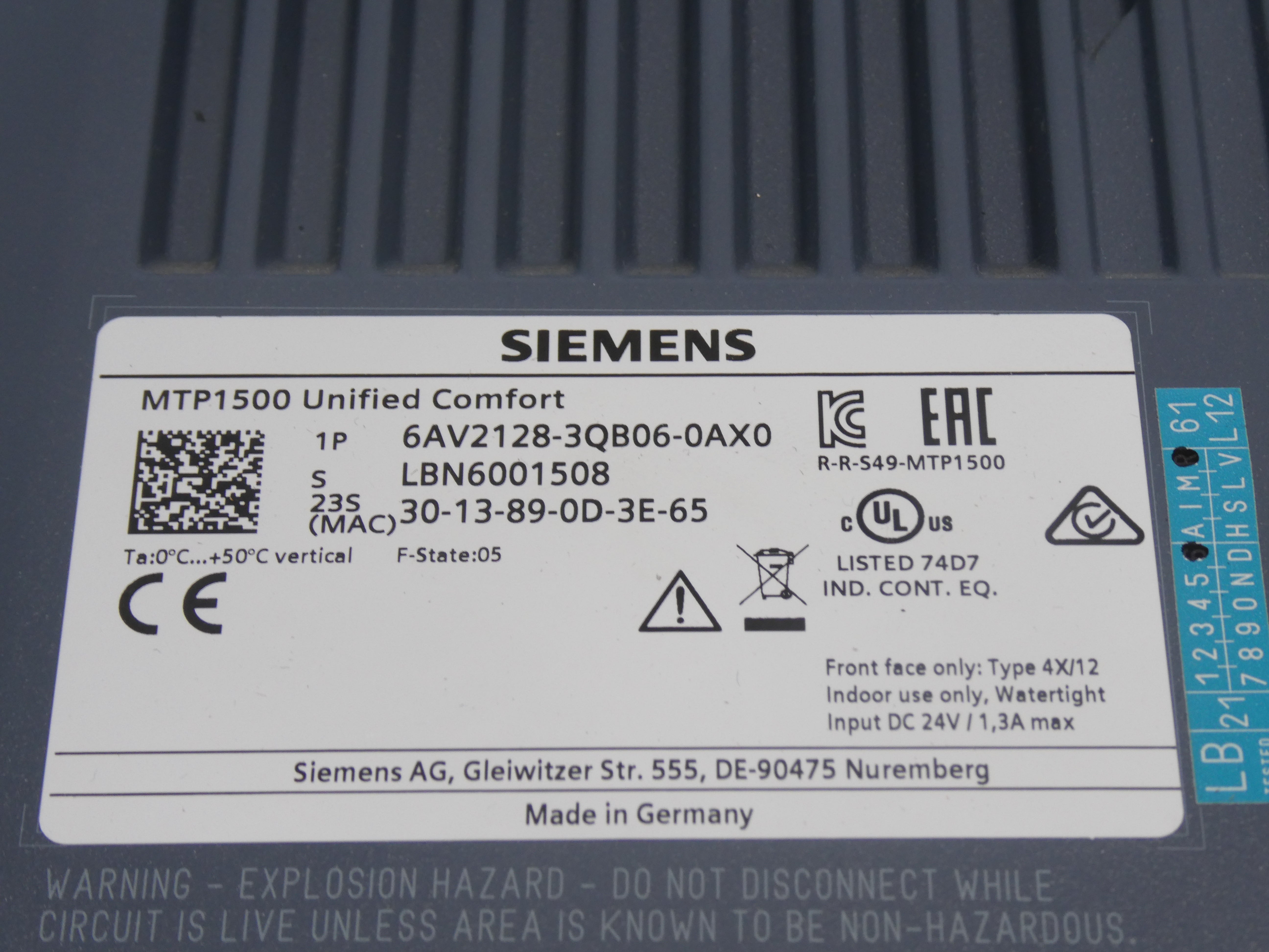 Siemens 6AV2128-3QB06-0AX0 MTP1500 Unified Comfort
