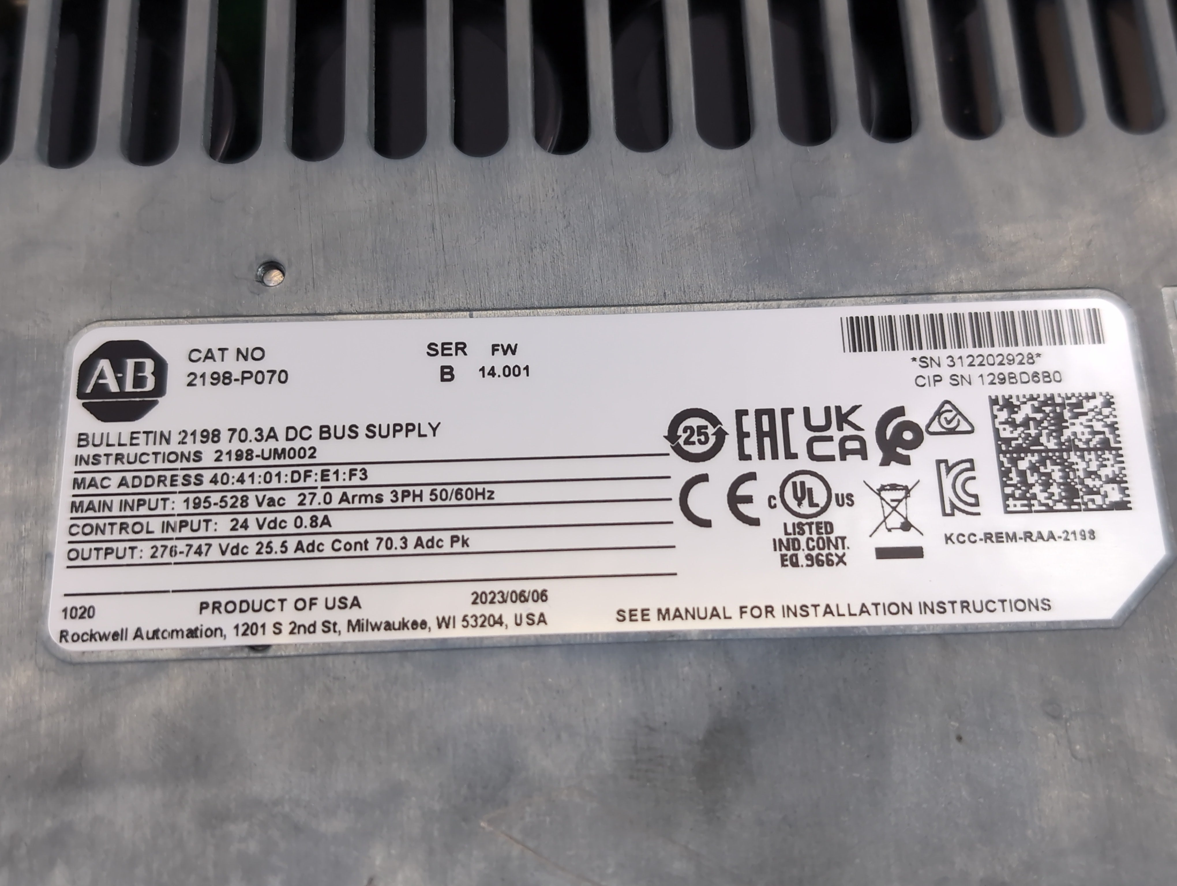 Allen Bradley 2198-P070 Kinetix 5700