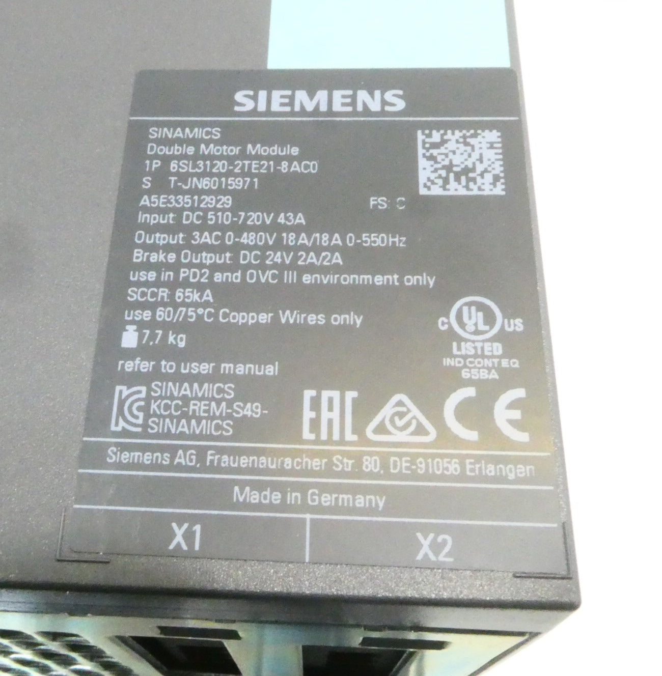 SIEMENS 6SL3120-2TE21-8AC0 SINAMICS DOUBLE MOTOR MODULE, Neuwertig