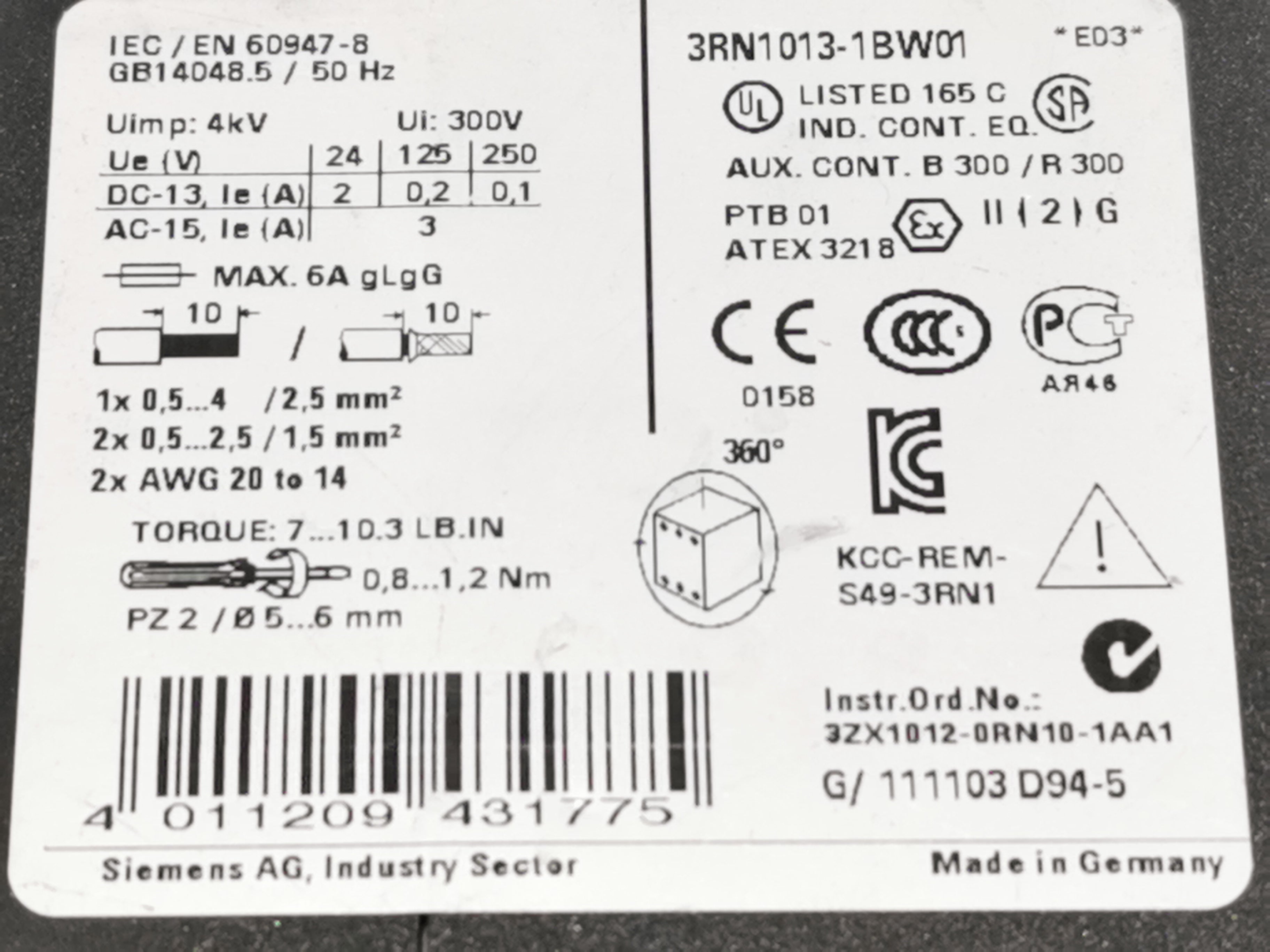 Siemens Sirius 3RN1013-1BW01